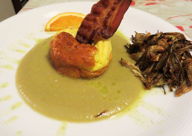 Tritate gli scalogni, la carota e il sedano per poi farli appassire in un filo d’olio con un pizzico di sale. Stufateli per alcuni minuti e, se dovessero asciugarsi troppo, aiutatevi con un pò d’acqua. Unite la patata ridotta a dadini e il prosciutto cotto, quindi proseguite per 5 minuti con la cottura a fuoco dolce.