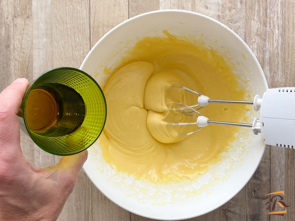 In una terrina sbattere le uova intere con lo zucchero rimasto, poi incorporare la maizena.